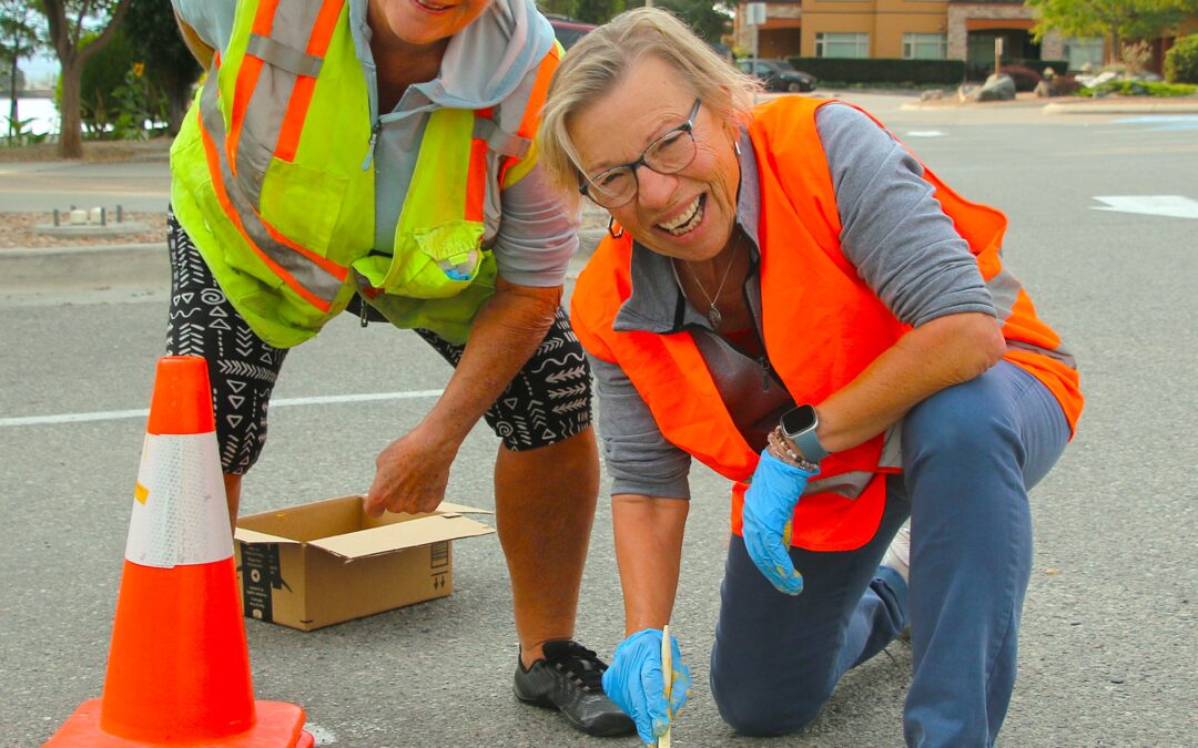 On Sunday, volunteers with the Osoyoos Lake Water Quality Society celebrated World Rivers Day by painting yellow fish beside town storm drains.